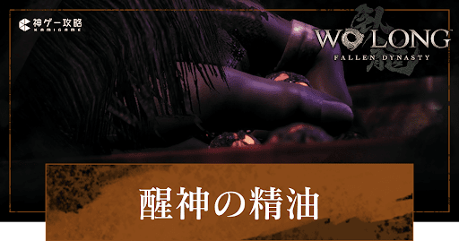 ウォーロン(Wo Long)の醒神の精油(せいしんのせいゆ)について紹介。効果やレア度、売値や入手方法などを掲載しているので、ウォーロンフォールンダイナスティをプレイする際の参考にどうぞ。