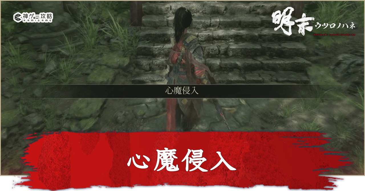 心魔侵入とは、心魔値が低くても固定で出現する心魔イベント。固定で出現する心魔を倒すと、淬羽経脈で装備できる「砭石」と、斗転星羽で「増魔」と「浄魔」を強化するための材料「僰人の血」が入手できる。