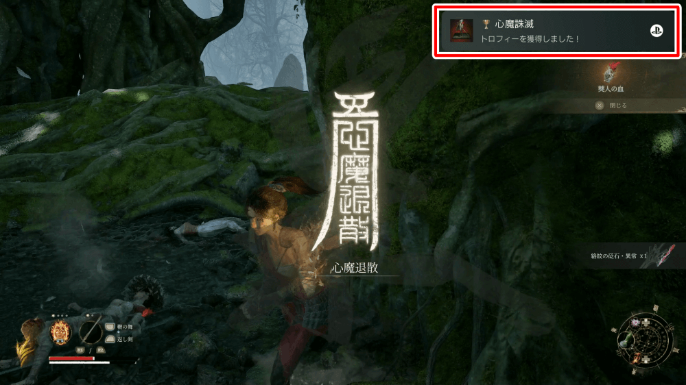 固定で出現する心魔を6体倒すと、トロフィー「心魔誅滅」を獲得可能。トロコンを目指す場合は、同一周回中にすべての固定心魔を倒そう。