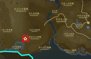フィローネ地方の湿地と平原の間にあるポイントでは、6匹ほどの騎馬ボコブリンが出現する。イオ・ソオの祠 から南東に向かってパラーセルで滑空していけばすぐに到着する。