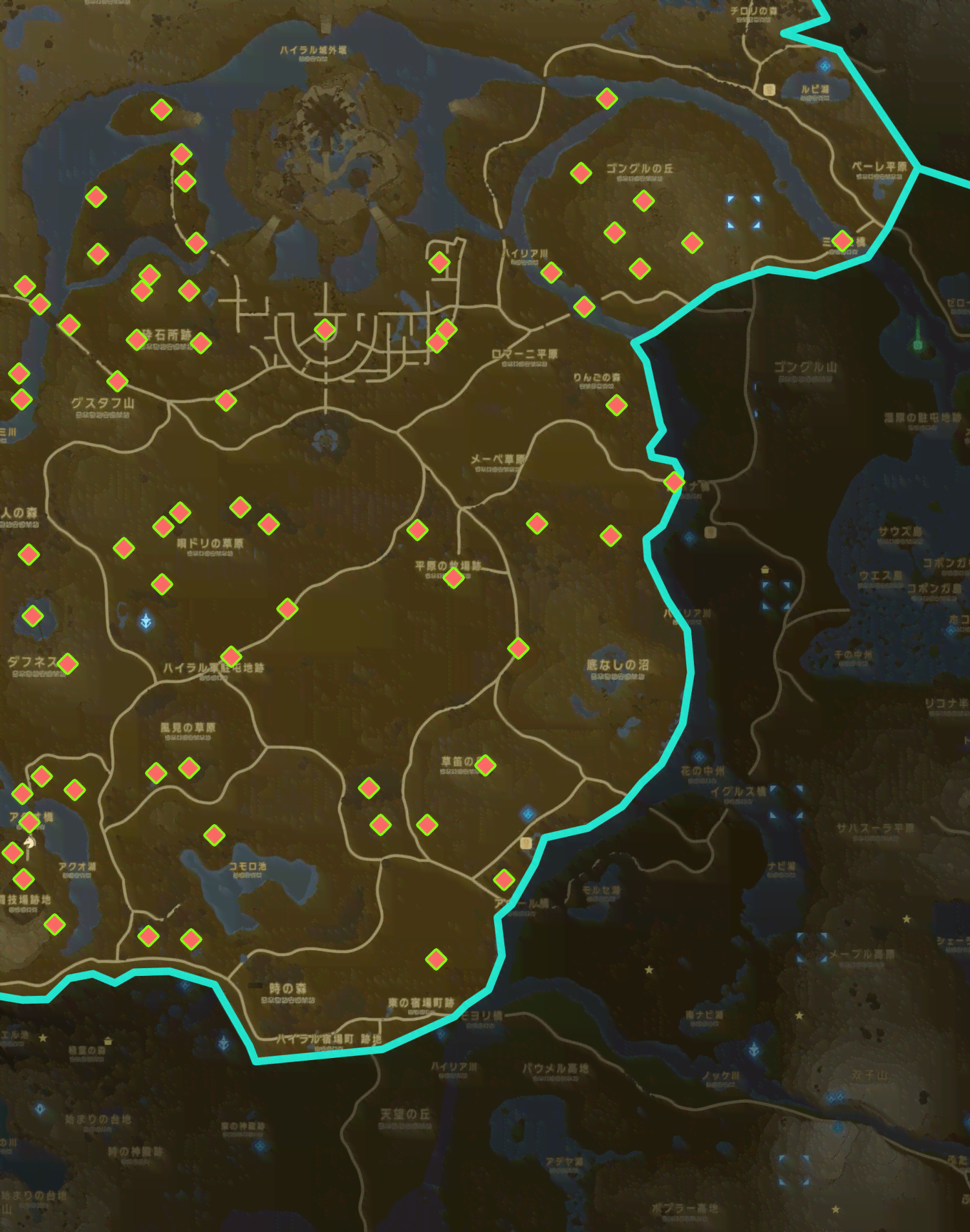 「中央ハイラル地方・東」のコログ出現場所