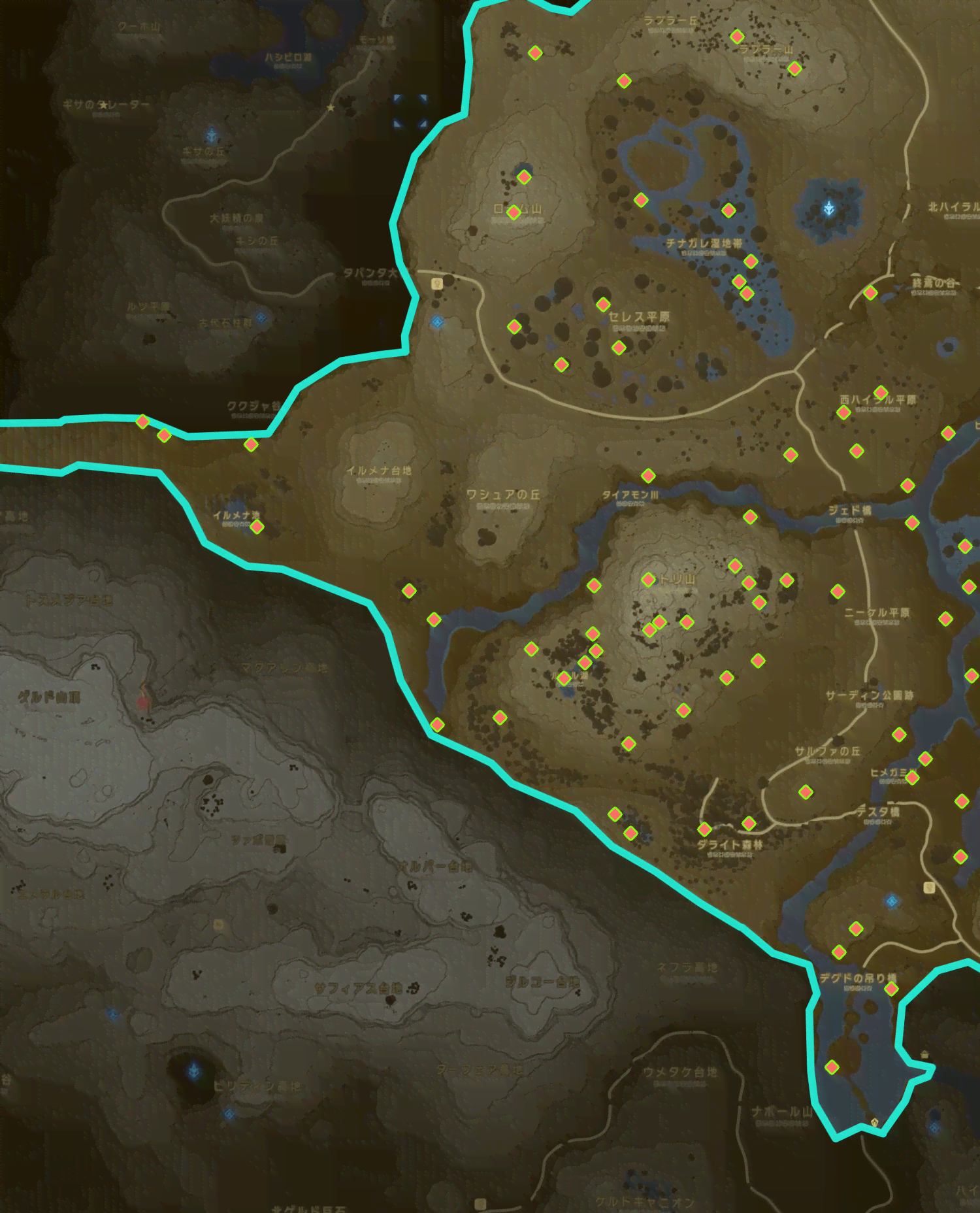 「中央ハイラル地方・西」のコログ出現場所