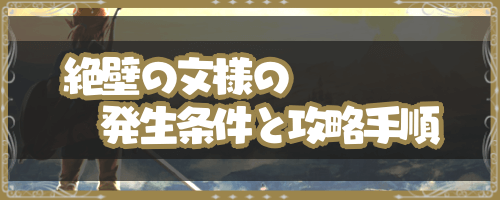 ゼルダの伝説BotW(ブレスオブザワイルド)のほこらチャレンジ「絶壁の文様」の攻略を掲載。ほこらチャレンジ発生からクリアまでの手順を解説しているので、BotW攻略の参考にどうぞ。