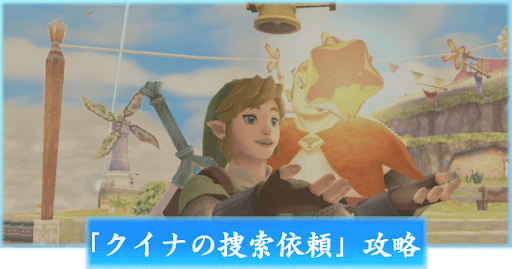 ゼルダの伝説 スカイウォードソード(HD)における、サブイベントの一つ「クイナの捜索依頼」ついての攻略手順を紹介。発生条件と攻略のポイントも掲載しているので、スカイウォードソードで、クイナを探す際の参考にどうぞ。