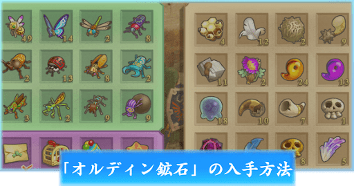 オルディン鉱石は「かぼちゃクレー」や「雷龍の荒修行」の報酬としても入手できるが、効率は悪い。どちらのミニゲームも時間がかかる上、入手できるかはランダムなため、時間あたりの入手量も少ない。