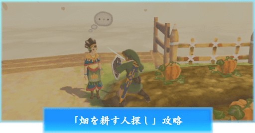 ゼルダの伝説 スカイウォードソード(HD)における、サブイベントの一つ「畑を耕す人探し」ついての攻略手順を紹介。発生条件と攻略のポイントも掲載しているので、スカイウォードソードで、畑を耕す人を探す際の参考にどうぞ。