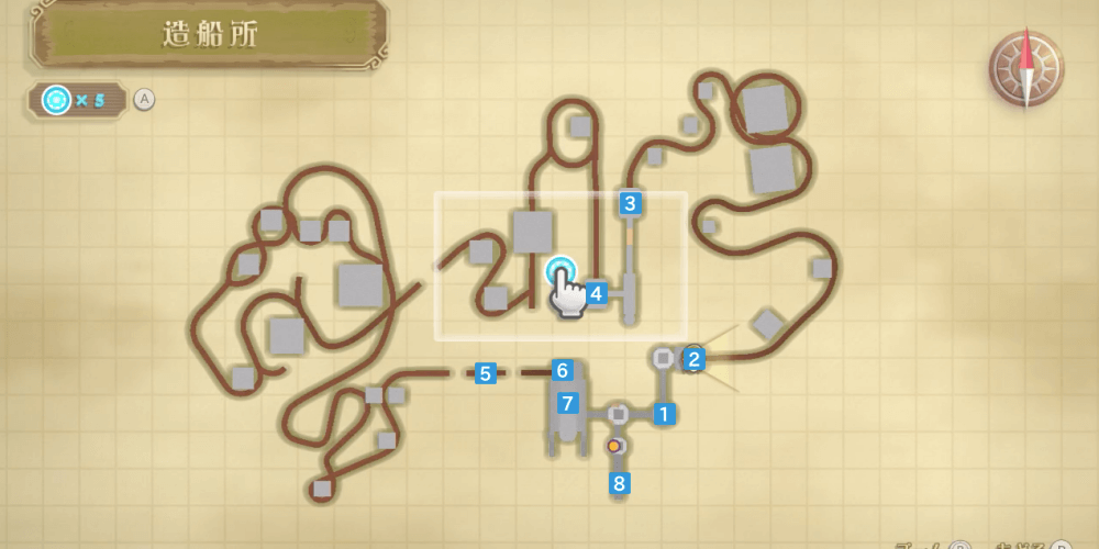 「過去の海図」を入手後、船長に話しかけると造船所の場所を教えてくれる。話しかけて船を出したら、地図の目印を元に海の西にある造船所を目指そう。