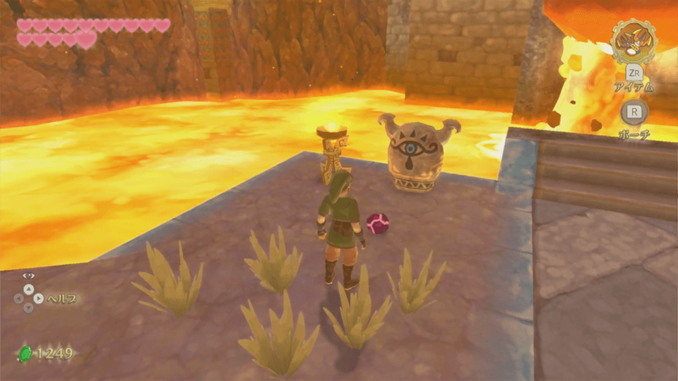大地の神殿入口西の間欠泉にバクダン花を乗せて岩を爆破した先へ。 |