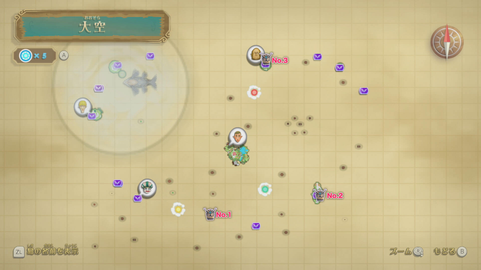| 1 | 黄光の柱から東方面の空洞島【ドロップ】マモノのツメ |