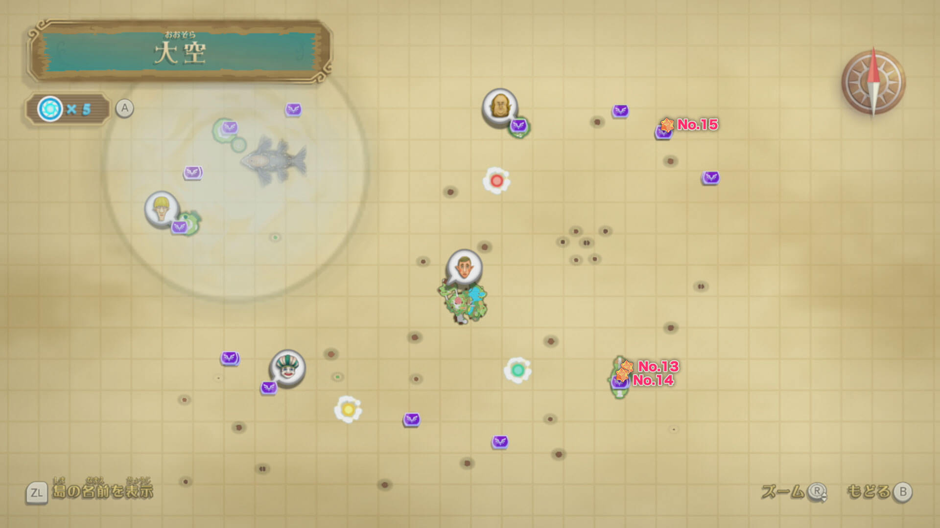 | 19 | 詩島の南西にある小島地面の印をモグマグローブで潜り、地下通路の北東側出口から檻の中へ。 |
