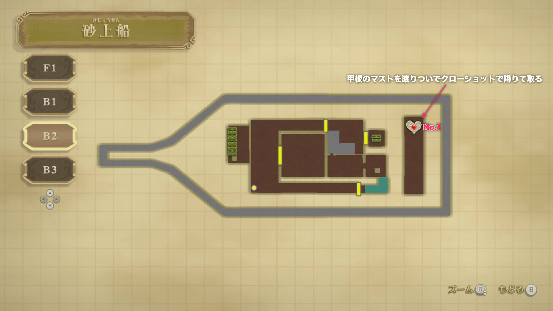 ゼルダの伝説 スカイウォードソード(HD)のエリア「砂上船」を紹介。砂上船のマップをはじめ、ハートのカケラの場所も掲載しているため、スカイウォードソード攻略の参考にどうぞ。