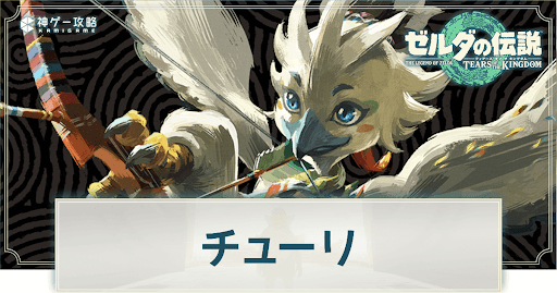 チューリは、『ブレスオブザワイルド』にて冒険の手伝いをしてくれたリト族の戦士テバの息子だ。前作でのチューリはまだ幼く、弓を背負って飛べなかった。しかし今作では弓を背負えるまでに成長しており、リンクの冒険を手助けしてくれる。