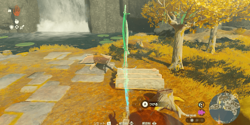 ウルトラハンドでイカダ作りを行う場合、水上だと浮力によって素材の角度が安定しないため思ったように接着できず、沈没することが多い。イカダ作りは湖のほとりで行い、イカダの完成後にウルトラハンドで水上に浮かべよう。