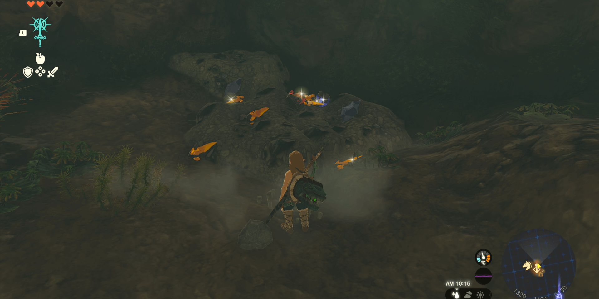 中央ハイラルから南東に向かい、サハスーラ平原鳥望台の真下にある洞窟で、鉱石を大量入手して売るのもおすすめだ。サファイアなどの高価な素材も入手できるため、岩ハンマーなどで洞窟の奥に進もう。