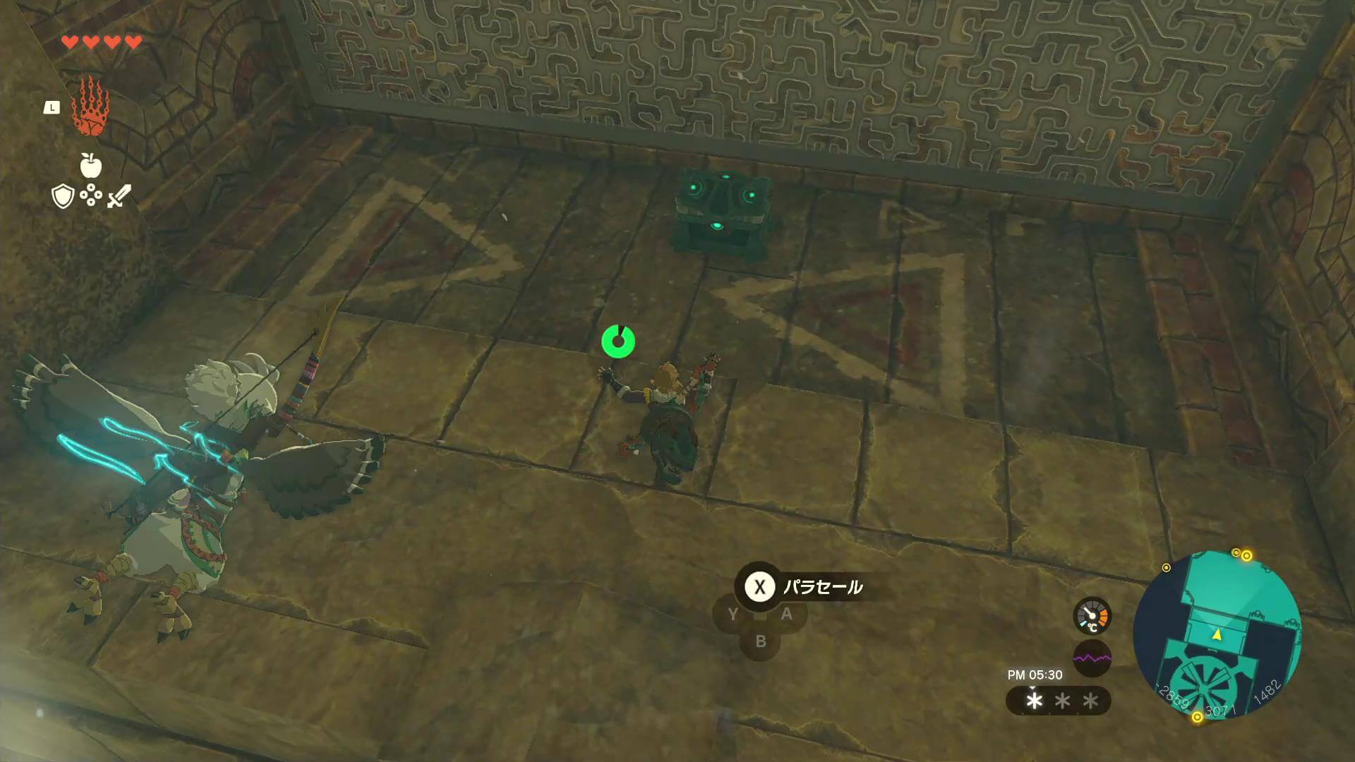 鍵②を起動させるには、マップから見て左側の穴からB1階に行こう。穴は、パラセールを使って滑空しなければ入れない位置にある。