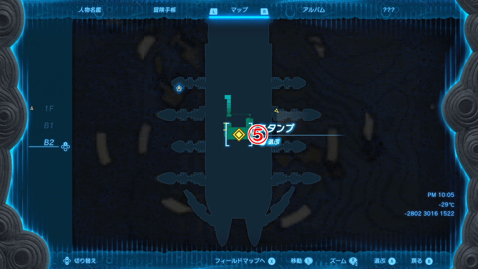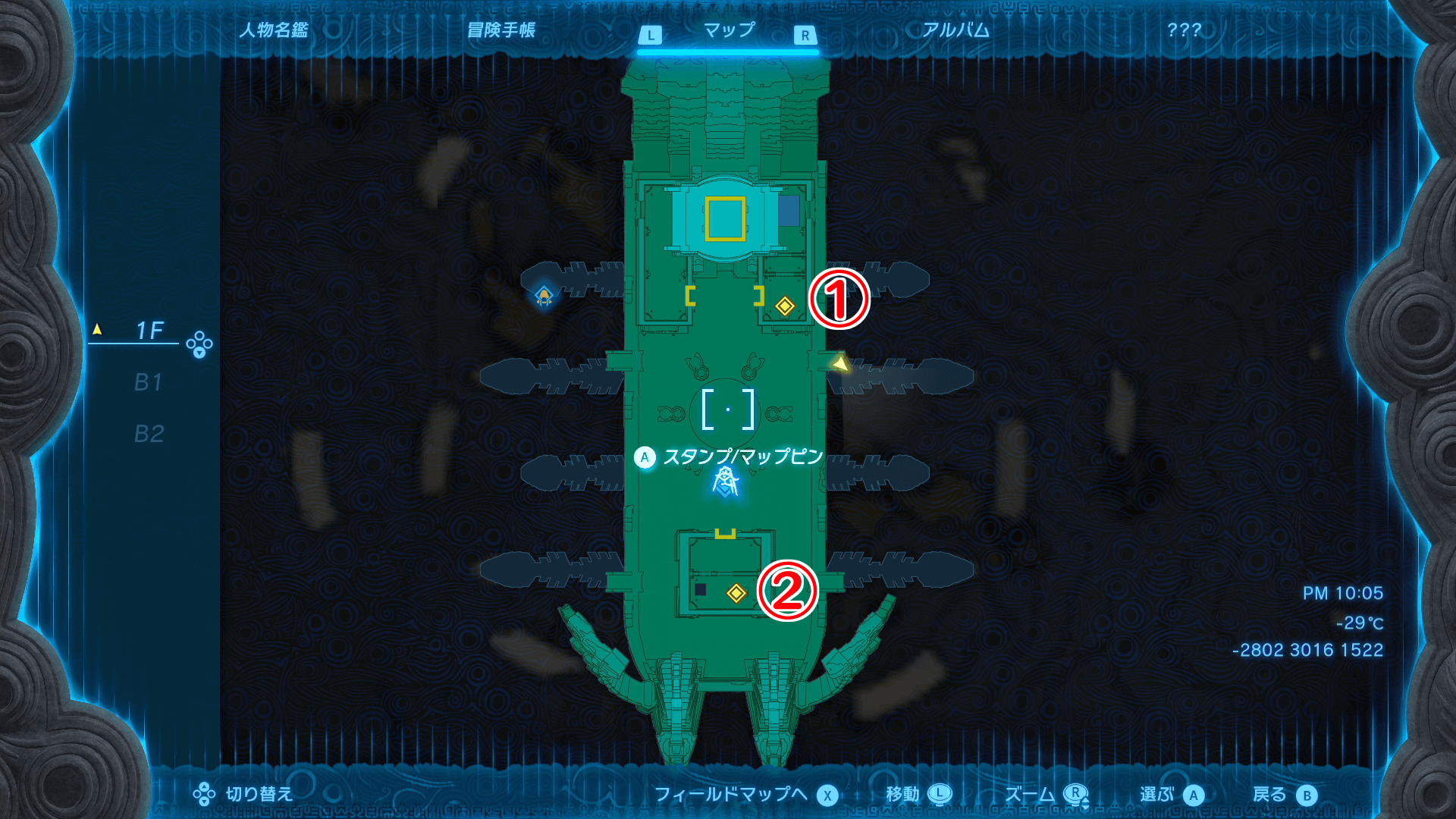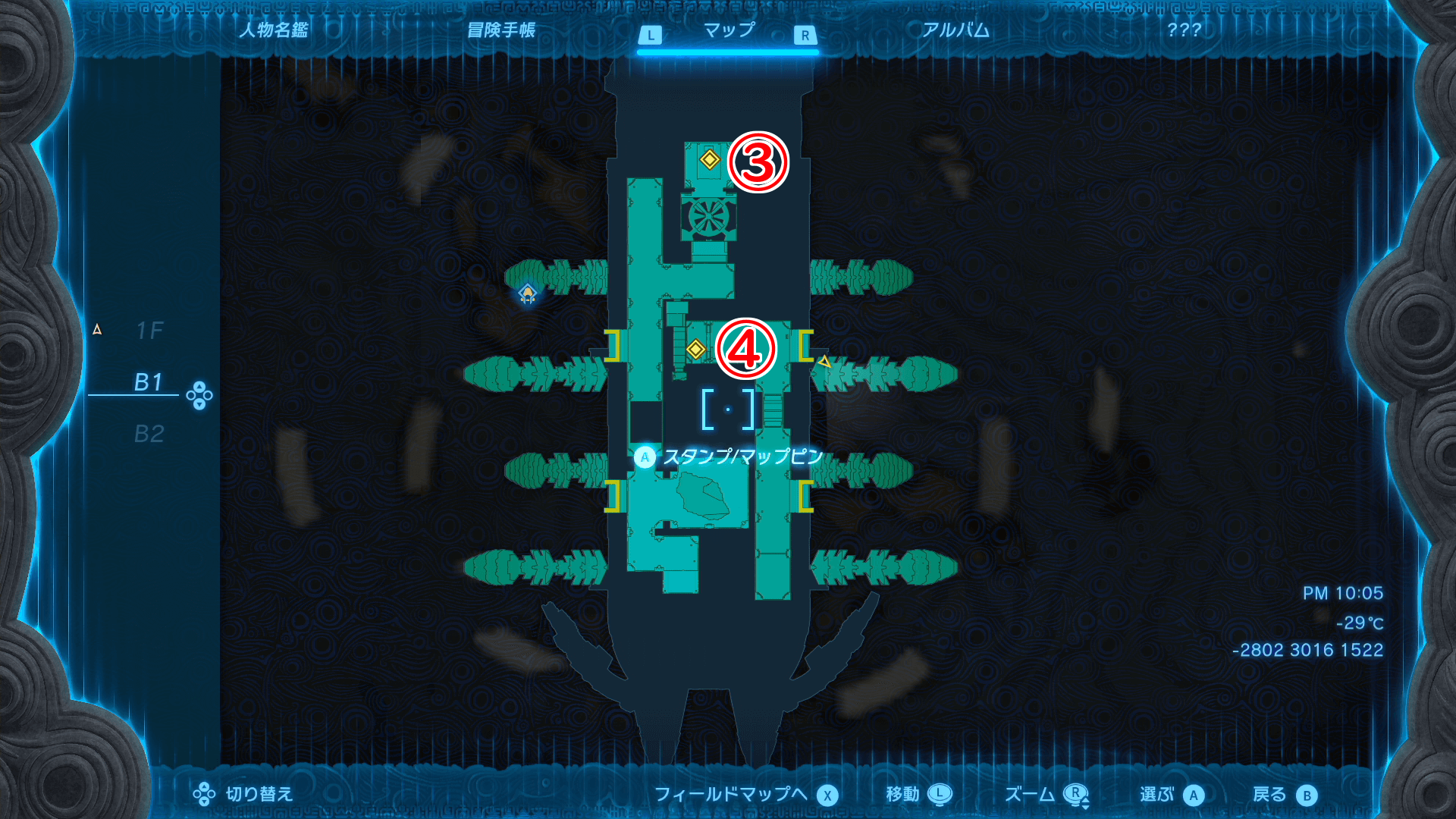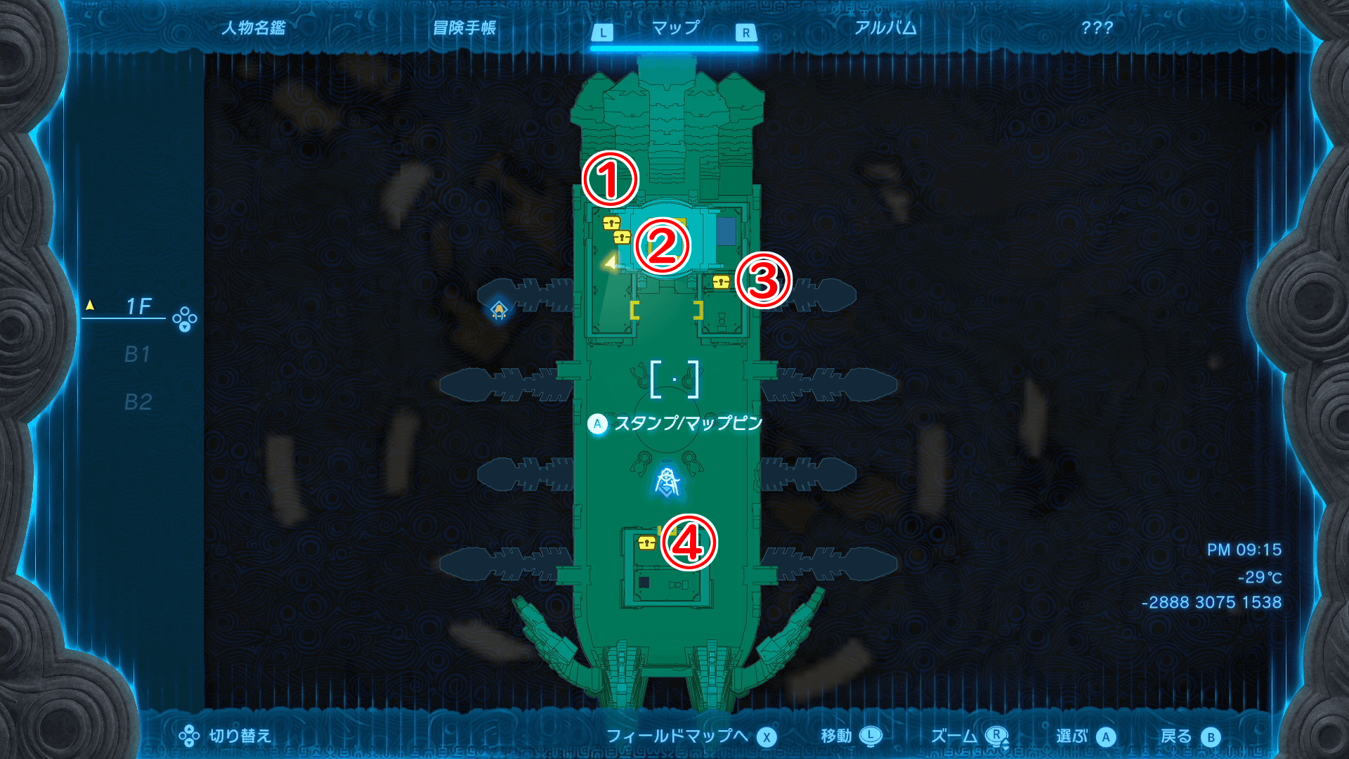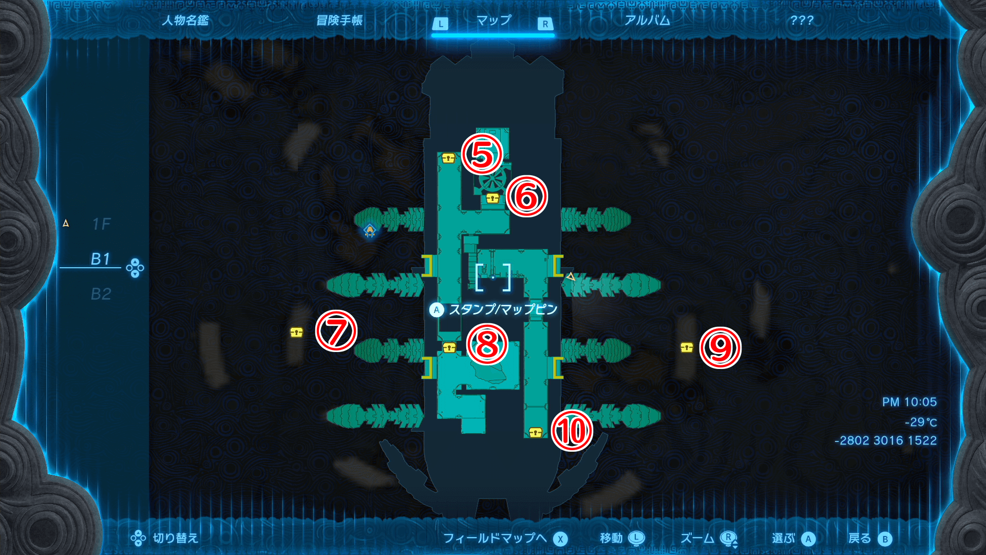 | B1階の宝箱マップ |