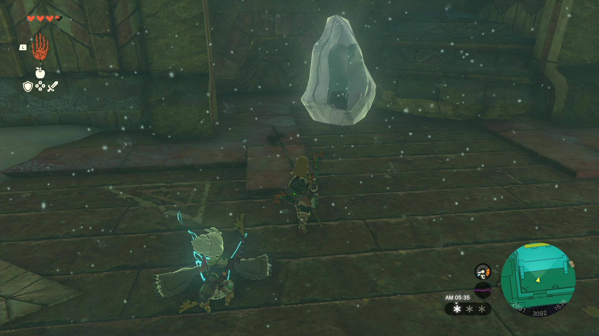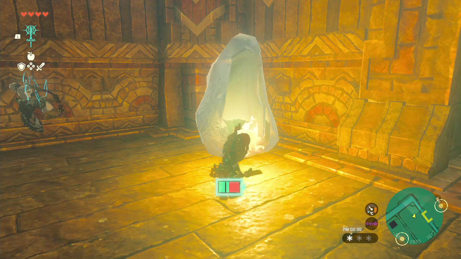 まずは神殿で最も高い塔横の氷床を壊し、落下してB1階に到達しよう。氷は上に乗ってジャンプするか、攻撃すれば簡単に壊れる。