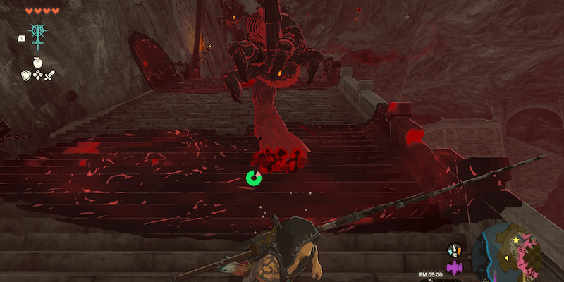 船着き場正面にある階段方面からハイリアの盾を目指す場合、道中に「瘴気の腕」が出現し追跡してくる。攻撃されると一時的に最大体力が減る危険な敵のため、襲われたら階段奥まで突っ走り、セーブ&ロードで追跡を振り切ろう。