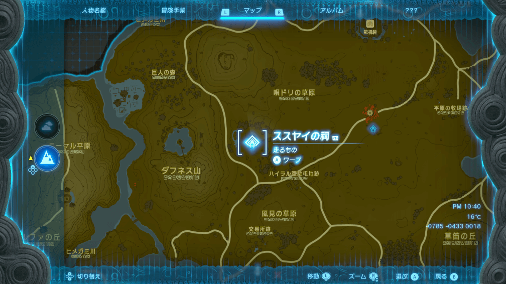 浮島に着地できなかった場合でも、地上を移動する手間はかかるが祠には辿り着ける。着地時に落下死しないように注意しつつ、できるだけ祠の座標に近づけるようにダイブしよう。