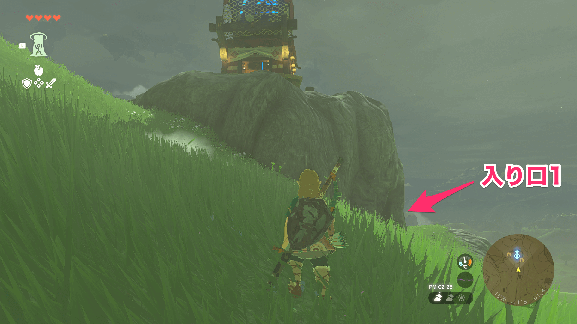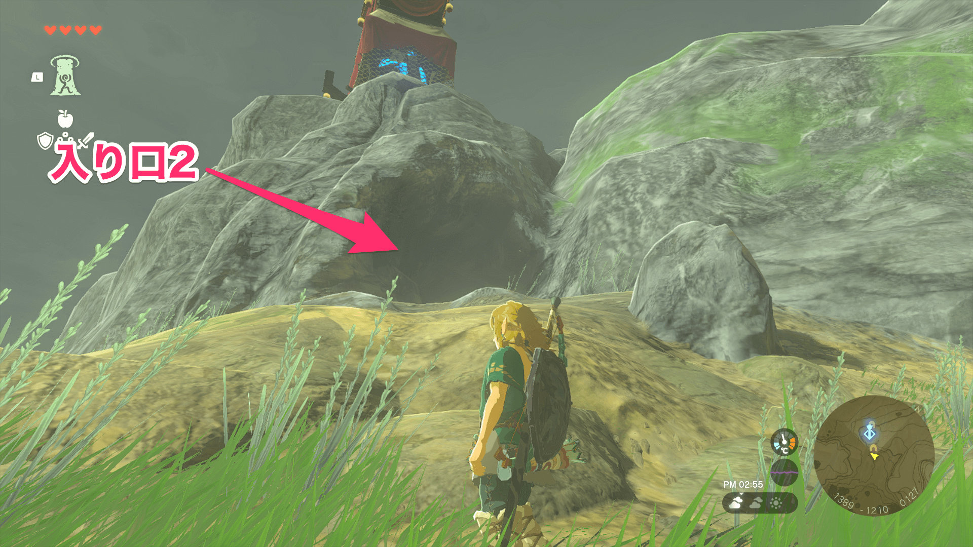 トーレルーフする場所がなかなか見付かれない場合は、マップ上でリンクと鳥望台のマークが重なる位置を探そう。マークが重なる位置へ向かって壁を壊して進んでいけば、トーレルーフを使う場所まで辿り着ける。
