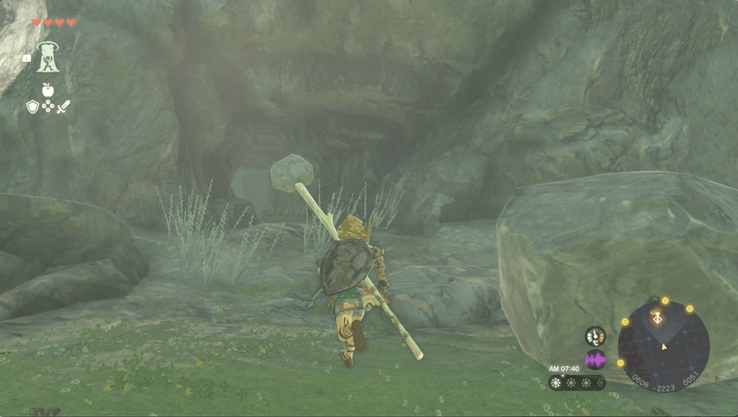 岩をスクラビルドした武器で岩の壁を壊す