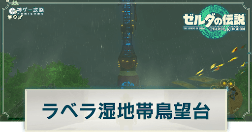 ゼルダの伝説ティアーズオブザキングダム(ティアキン/totk)のラベラ湿地帯鳥望台について掲載。場所や行き方だけでなく、鳥望台への入り方や解放の手順についても紹介しています。