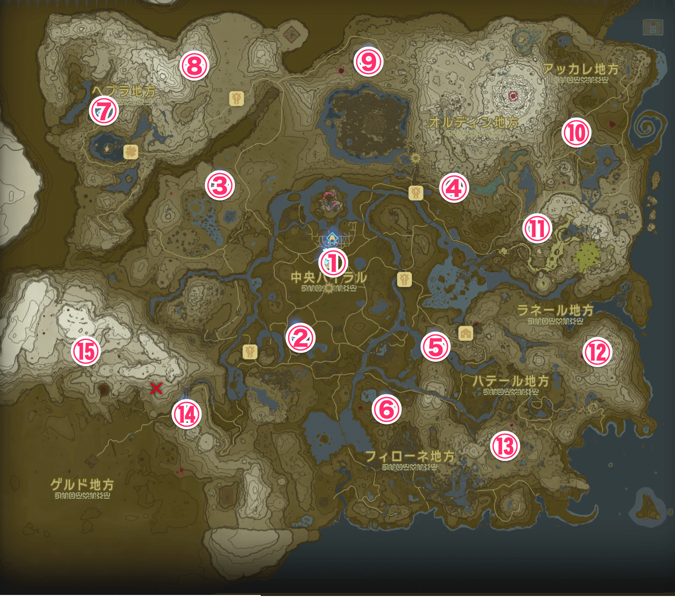| ⑬ラベラ湿地帯 | ⑭ゲルドキャニオン | ⑮ゲルド高地 |
