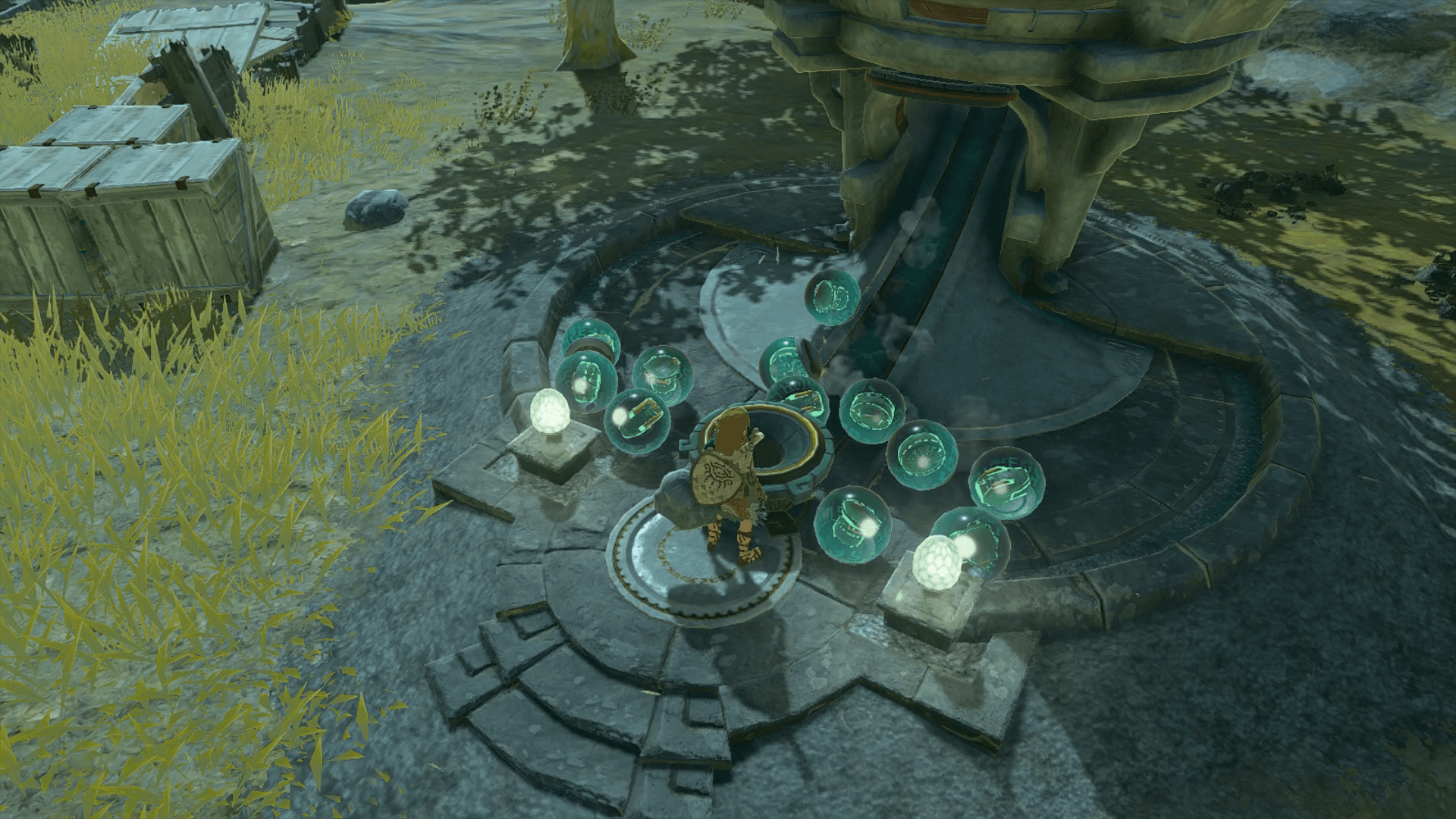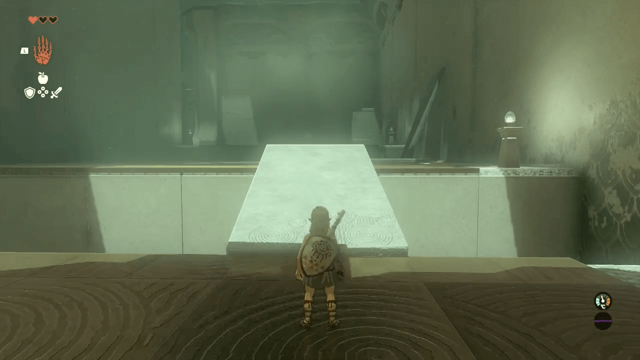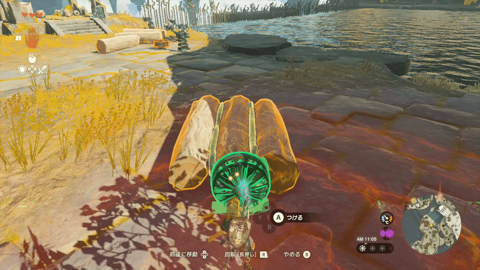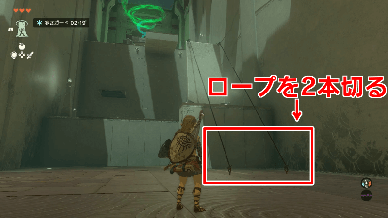 └南のトロッコ側にコログと携帯鍋の宝箱がある |