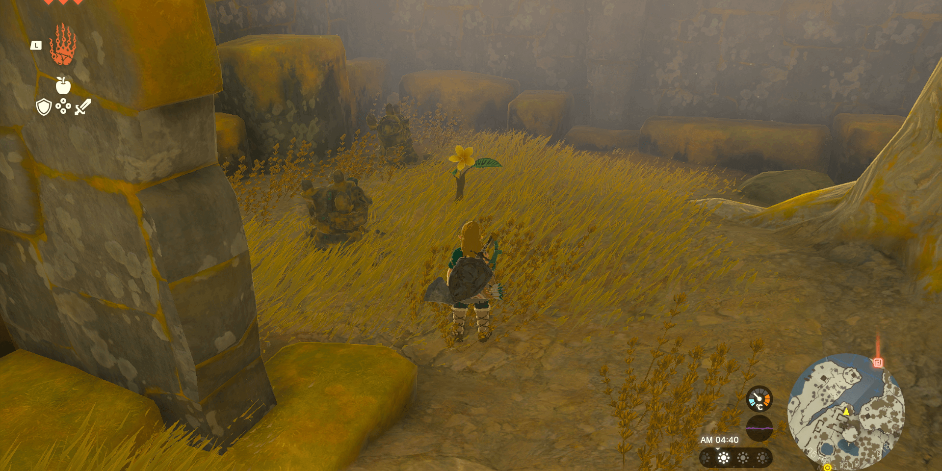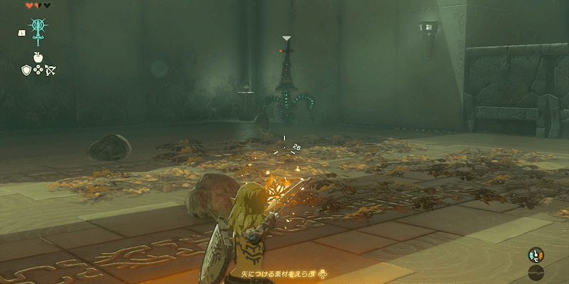 リンクが所持武器や盾を使うと耐久値が減っていき、武器や盾の耐久値が0になると壊れて使えなくなる。いざという時に手持ち武器が不足しないように、装備を常にストック数上限まで所持しておこう。