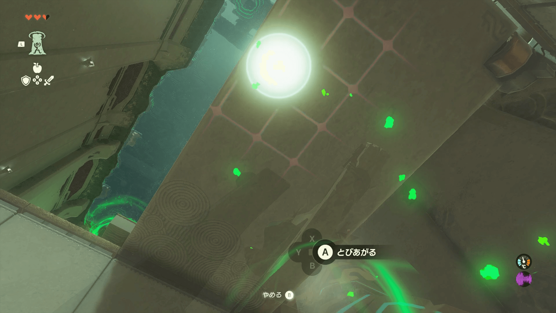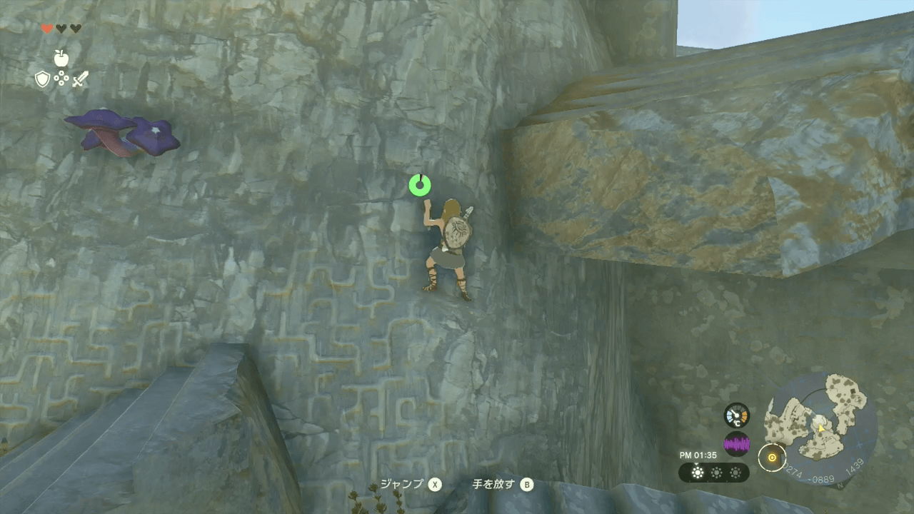 └張り付きながら横移動で崩れた階段を越える |