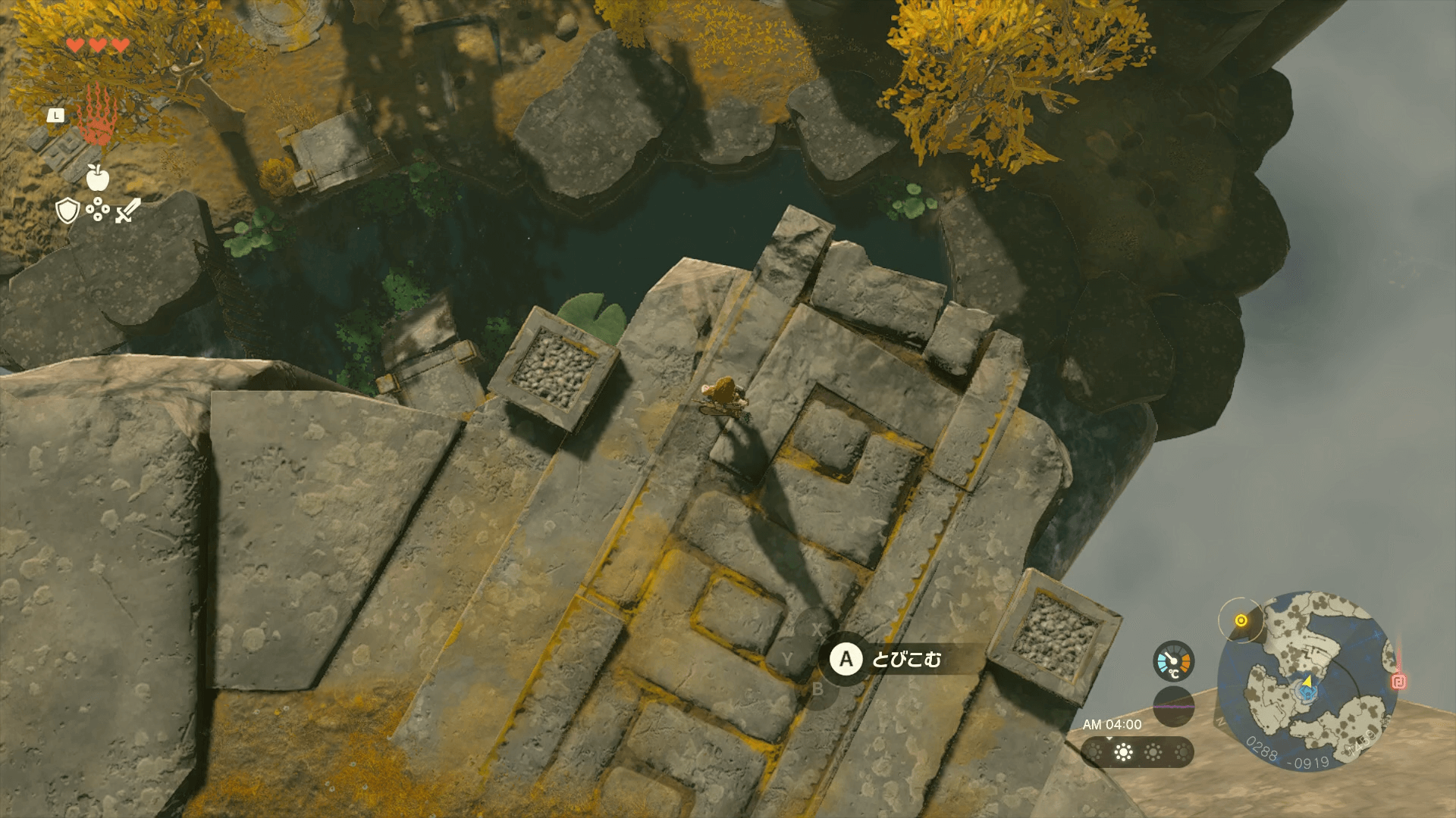 | 高所から下りる際は落下ダメージに注意 |