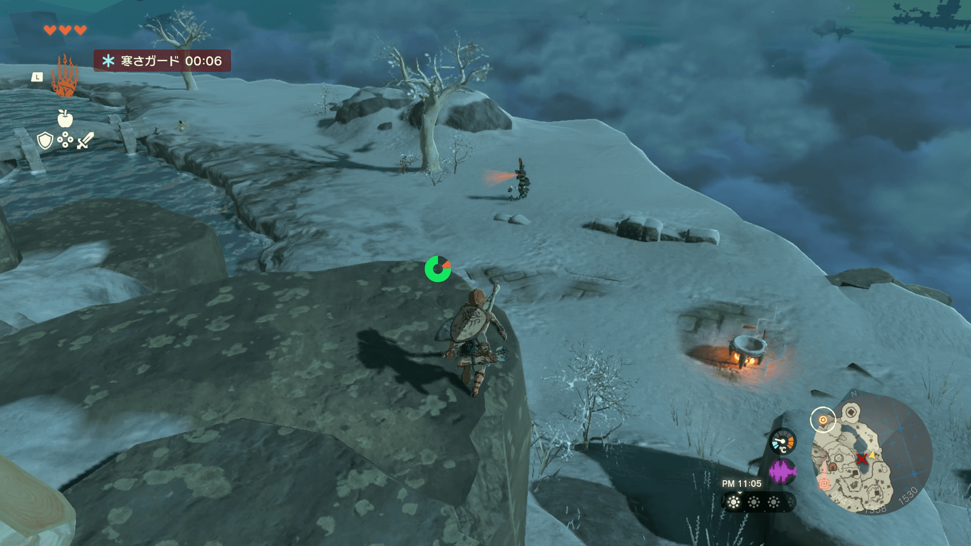└付近の焚き火で回復アイテムを料理しておく |