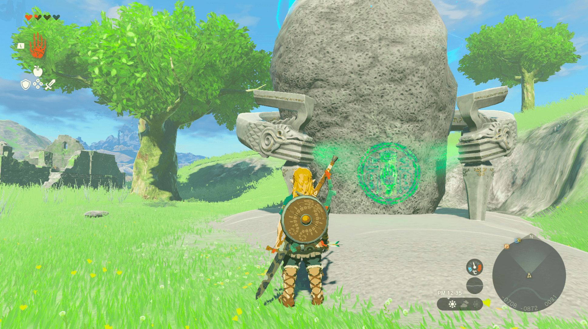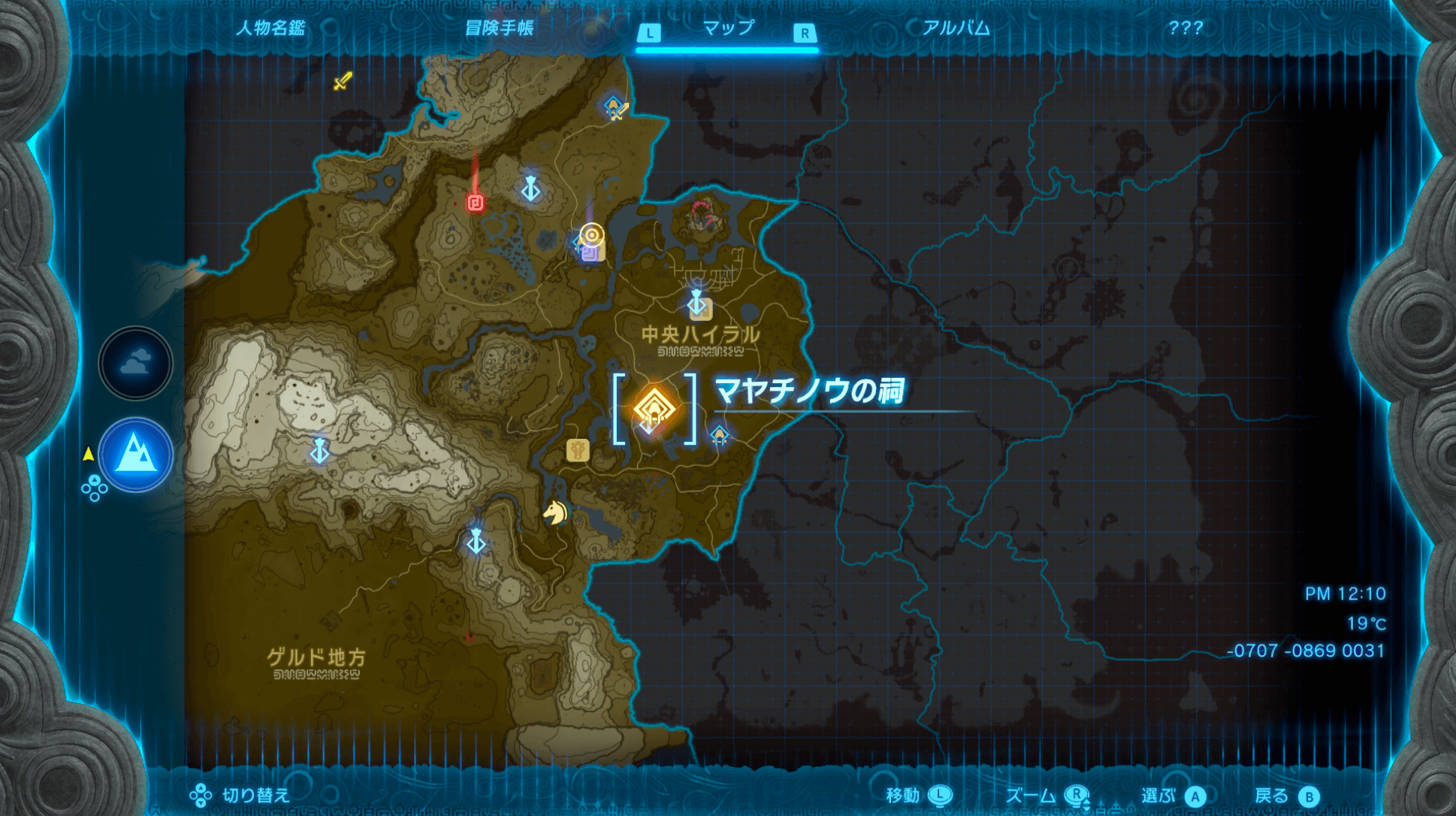 「マヤチノウの祠」は、ハイラル平原鳥望台のすぐそばにある。もし、すでにハイラル平原鳥望台を訪れているなら、マップを開いてワープすれば、草原を進まずに簡単に行ける。