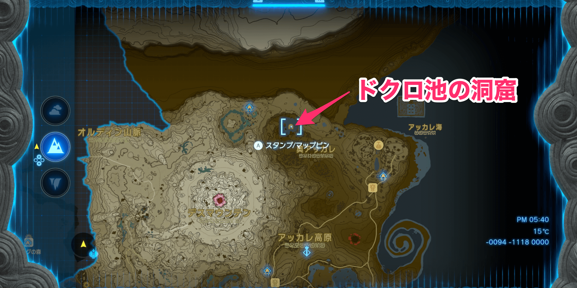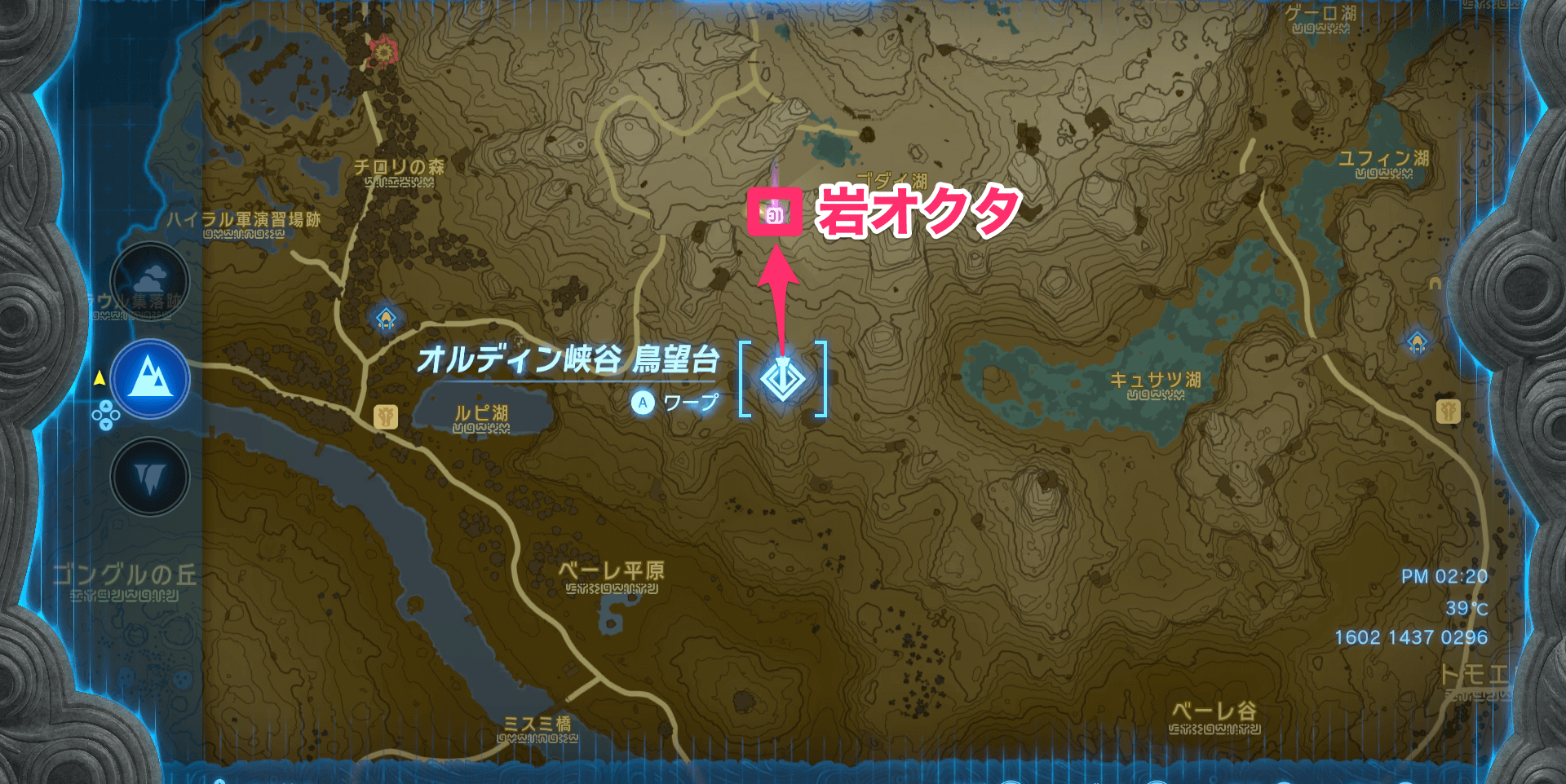 最強武器の効果を厳選したい場合は、岩オクタがいる場所に移動しよう。岩オクタは、デスマウンテンの付近に生息している。オルディン峡谷の鳥望台から北へ向かえば、すぐに出会える。