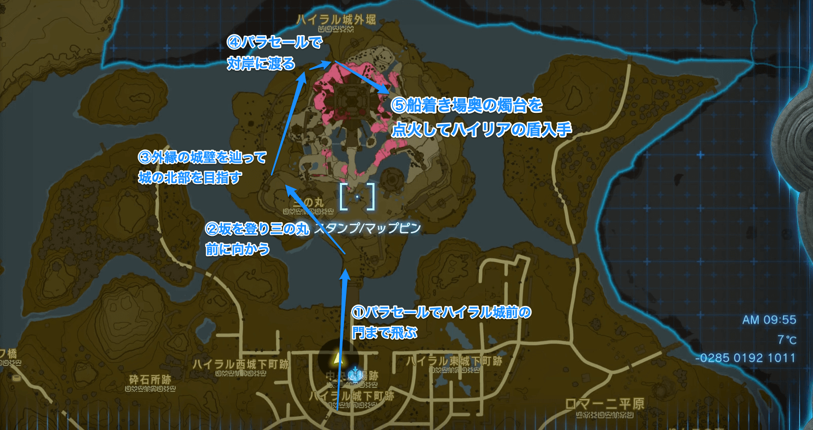 90 | 性能 序盤入手可能な耐久最強盾入手方法 ハイラル城北部の船着き場 |