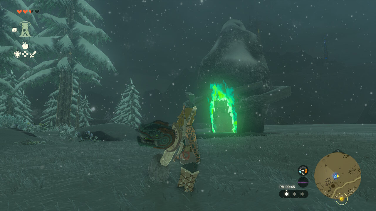 雪原の馬宿から北方向に目視できるオロチウムの祠へ向かう |