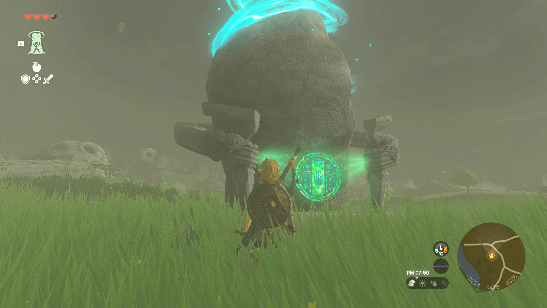 「オヤミオの祠」へは、監視砦の鳥望台から大ジャンプしよう。大ジャンプすれば、走っていくよりも早く到着できる上、緑色に光る祠を見つけやすいため、迷わずにたどり着ける。