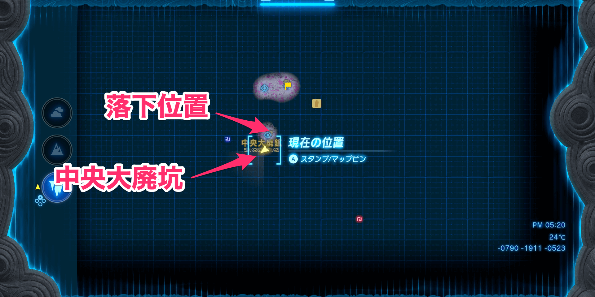 | 一番近い深穴 | 中央大廃坑の場所 |
