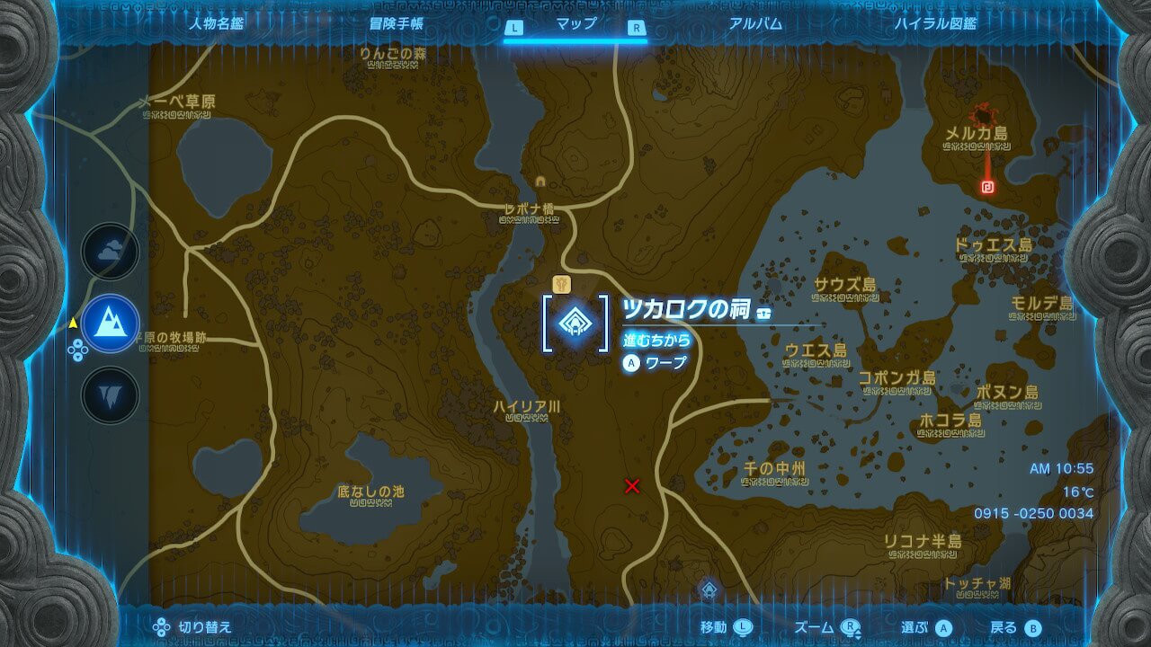陸路でツカロクの祠へ向かう場合には、道なりに東進してハイリア川を超えてから、道なりに南下していこう。ラネール湿原まで行くと進みすぎなので、道を見失ったら川沿いに南下するよう意識すると迷いにくい。