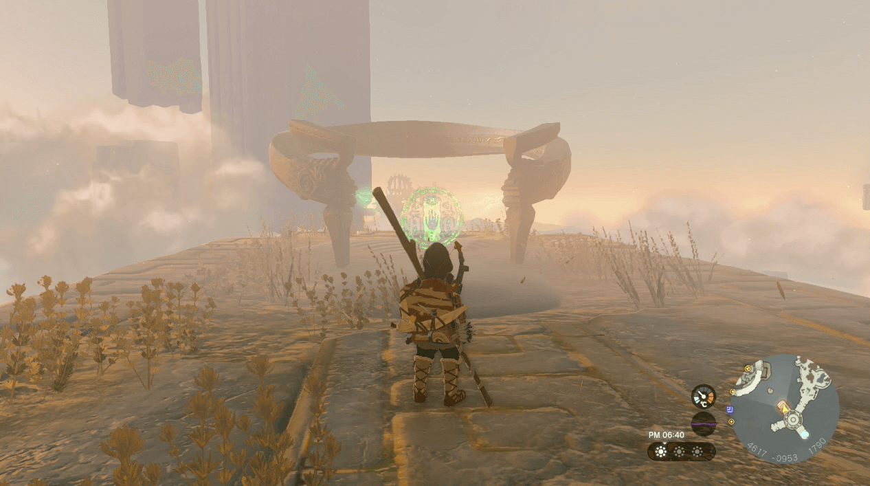 マヤナシの祠は、鳥望台から遠く高度の高い場所にある。パラセールでは届かないので、途中にある浮島を経由して飛行能力のあるゾナウギアを回収しよう。