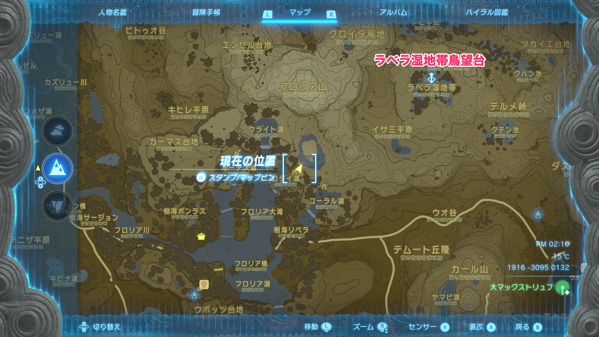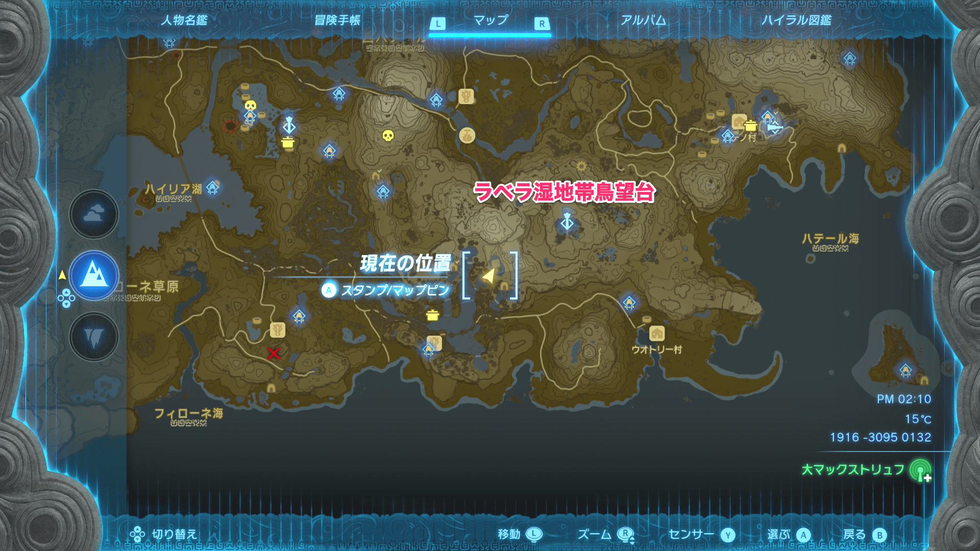 大マックストリュフは、ロダイ湖ほとりの洞窟の大穴付近にある。洞窟へは、ラベラ湿地帯鳥望台から南西へ飛んで向かおう。
