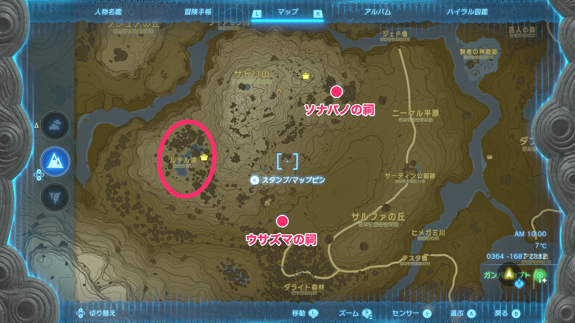 ガンバリカブトは、サトリ山のルチル湖で入手できる。付近の「ウサズマの祠」や「ソナパノの祠」を解放しておいて、向かいやすくしておこう。