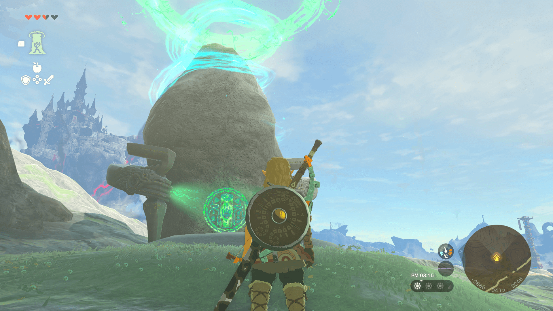 「イショダグンの祠」へは、監視砦の鳥望台から道なりに沿って西に進んだ先にある。そのため、敵と戦ったり、素材を集めながら進んで行こう。また、時間をかけずにすぐに行きたいなら、鳥望台から大ジャンプしてパラセールで行くと良い。