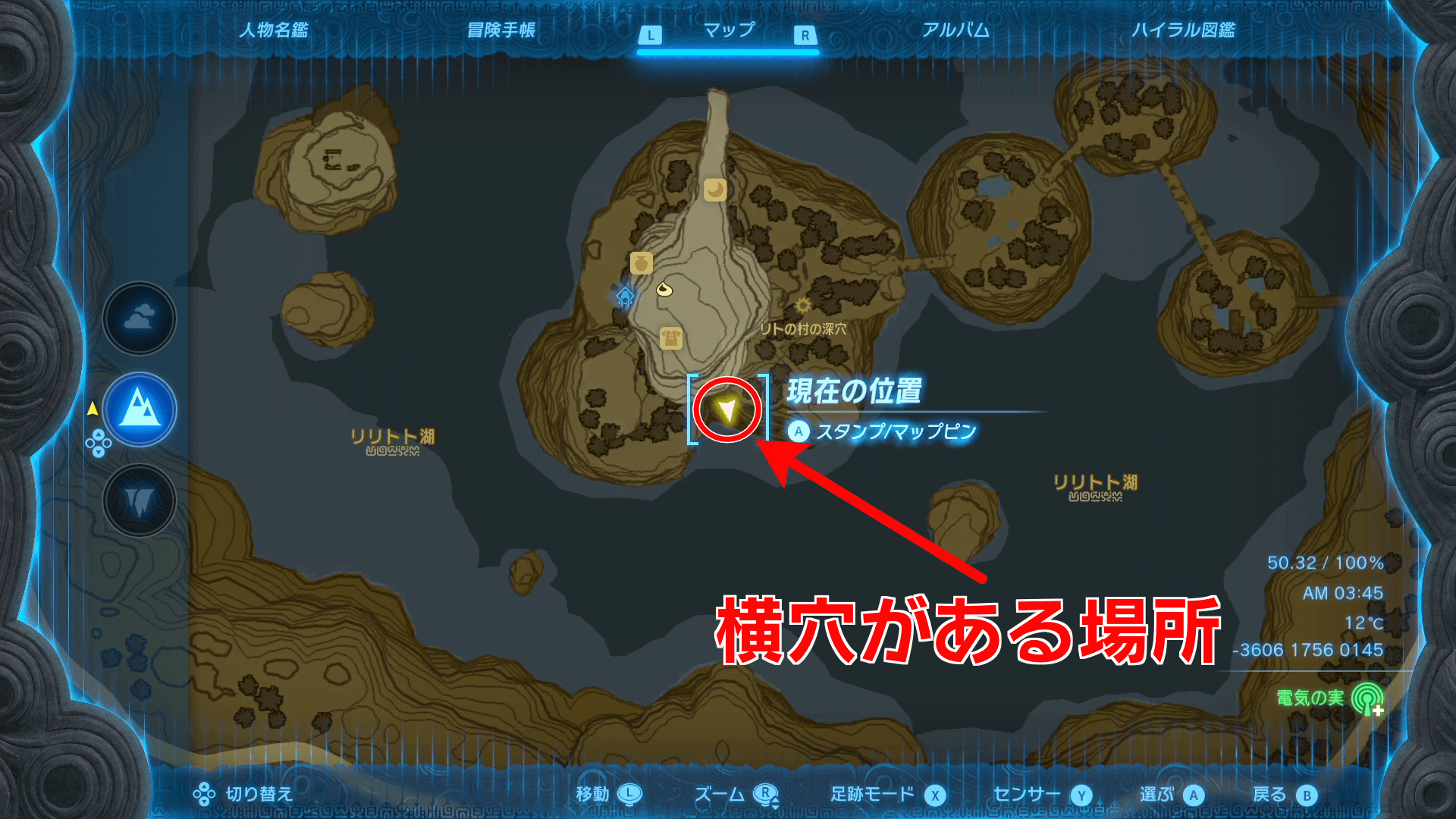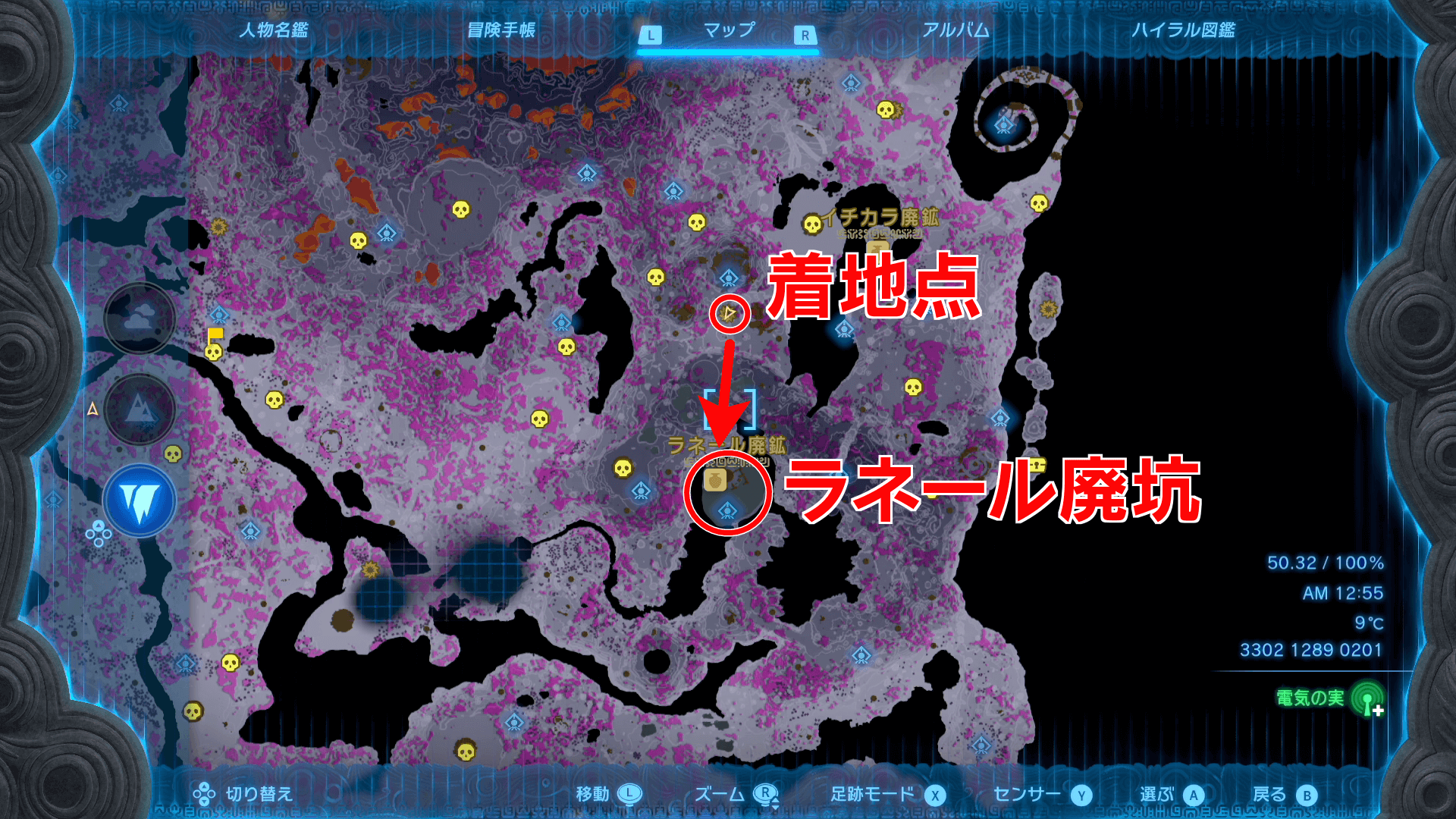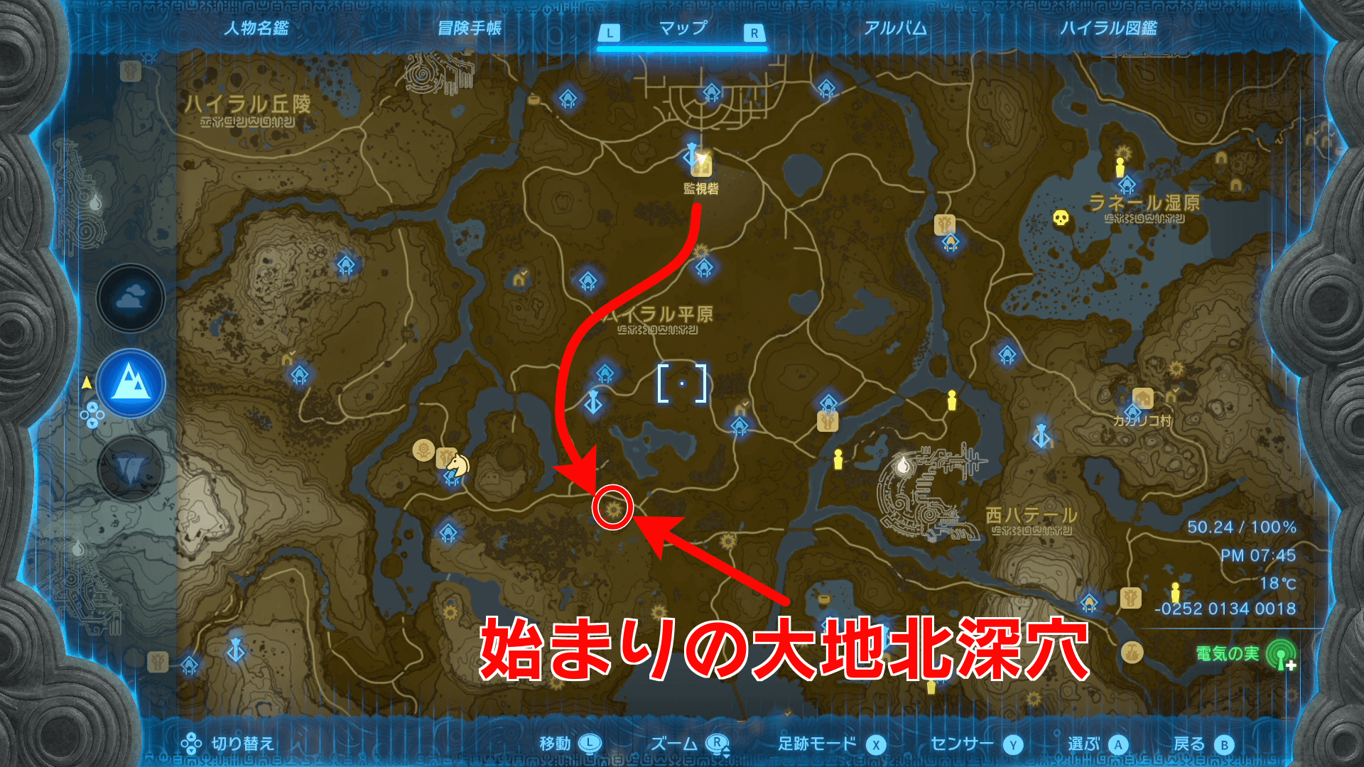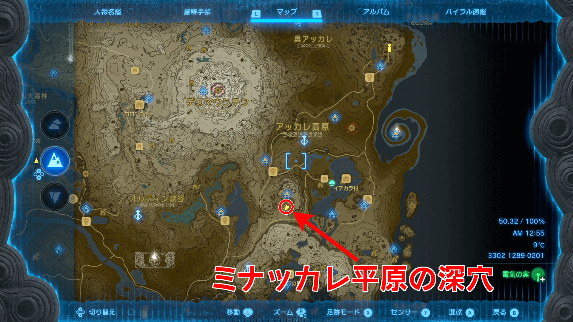 ゲルド廃坑までは、地上の「ビリディン高地の深穴」から地底に降りていくのがおすすめ。地底からも像を辿れば行き着けるが、マップが解放されていない状態では、進みにくいため地上から行こう。