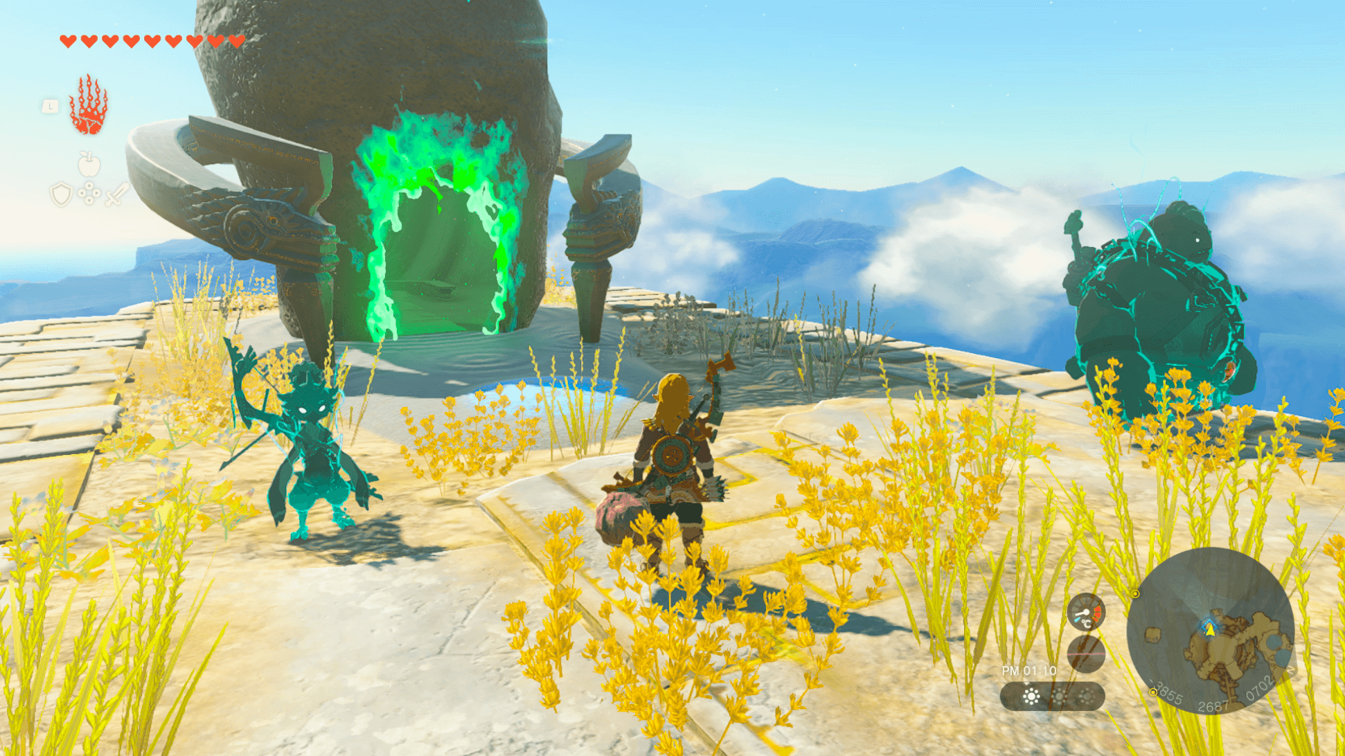 風の神殿から「イジョオの祠」に向かうなら、神殿の周りを飛ぶ浮遊船を経由して高度を上げてから向かおう。浮遊船を3〜4つほど経由すれば、がんばりゲージを増やしていなくても到着できる。ただし、経由するのに夢中になって祠から遠ざからないようにしよう。