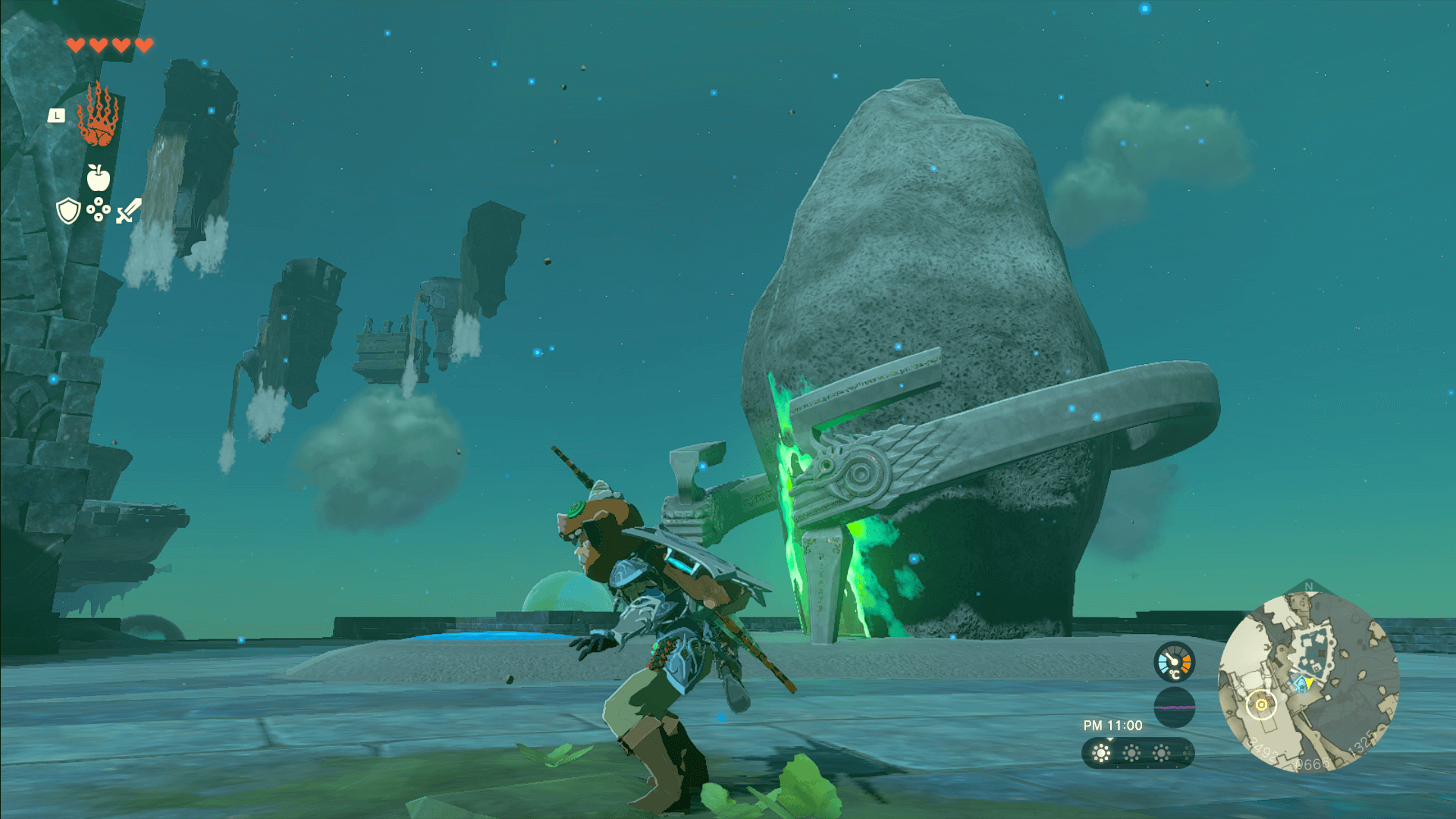イゴションの祠にある宝箱は、1つ目の泡に乗った先にある足場左手で落下し続けている。ウルトラハンドで付近にある泡を落下地点に運ぶと受け止められるので、足場まで引き寄せて回収しよう。