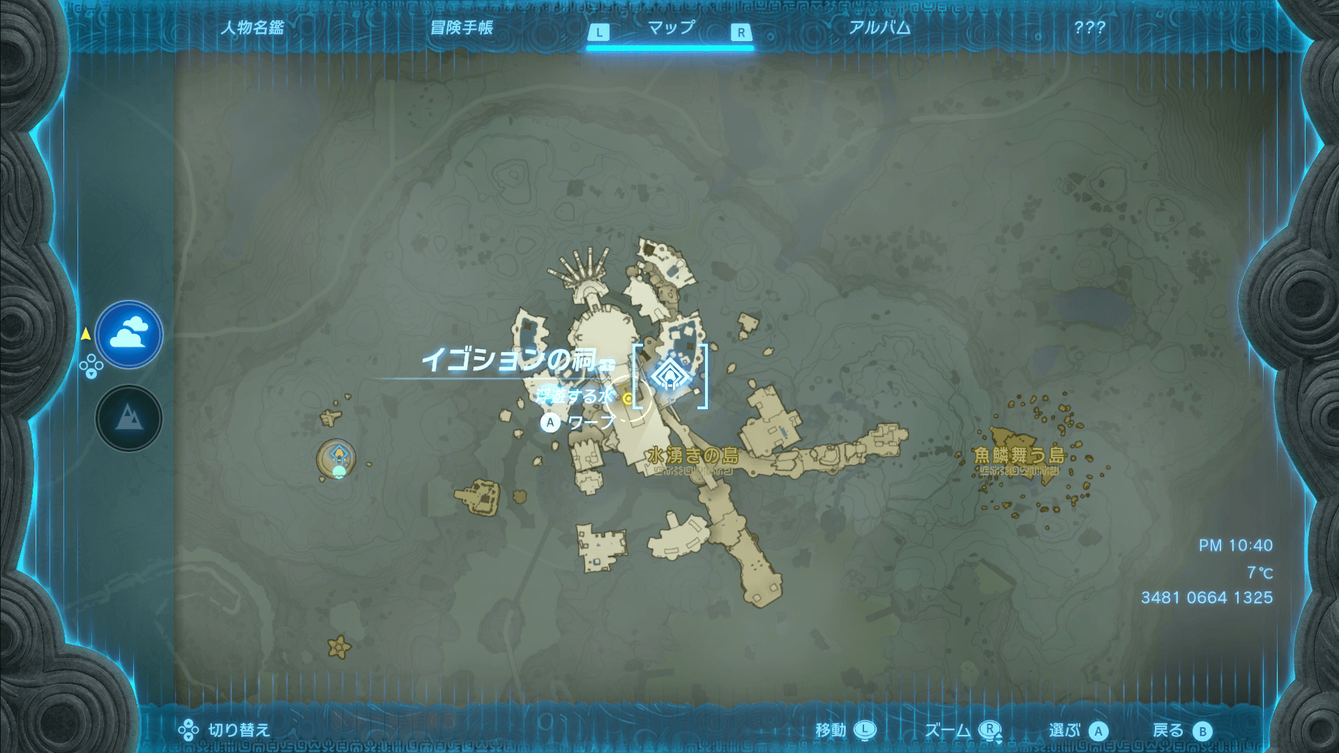 イゴションの祠へ向かうためには、ゾーラ関連のメインチャレンジを進行させておくのが最も効率的だ。「ゾーラの里のシド」を進めて東の貯水湖に滝を発生させ「ゾーラの鎧を直すには」で入手したゾーラの鎧で滝登りを行えば簡単に祠のある浮島へと向かえる。