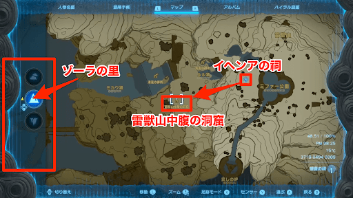 | 雷獣山中腹の洞窟の場所 |