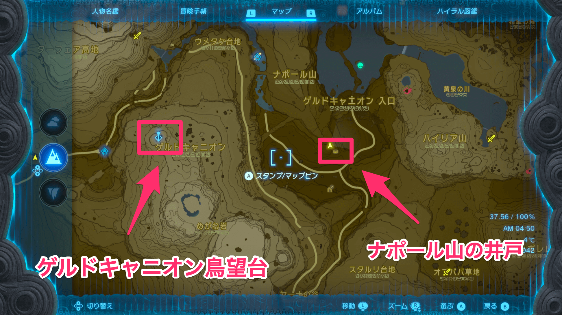 「マックストカゲ」は、ゲルドキャニオンのナポール山の井戸で入手できる。井戸へは、近くの「ゲルドキャニオン鳥望台」から東に飛べばたどり着ける。