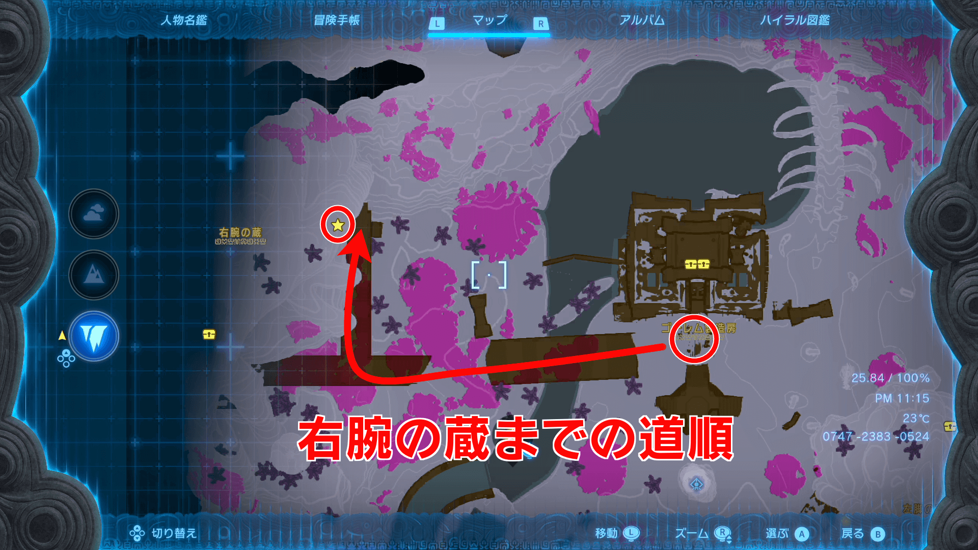 右腕のパーツ取得の攻略チャート